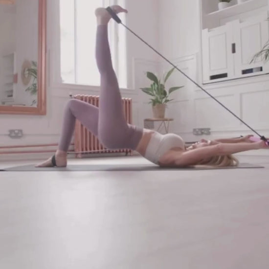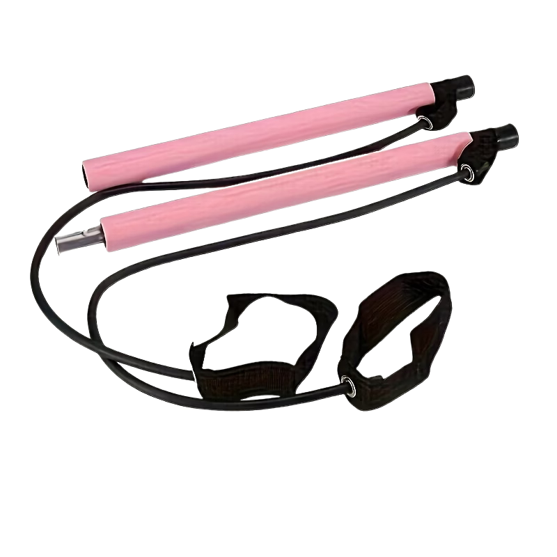 Pilates Bar комплектът е удобен уред за тренировки от вкъщи, който позволява разнообразни упражнения за цяло тяло. Съчетава лек и стабилен бар с еластични ластици, с които можеш да тренираш ръце, крака, корем и седалище.